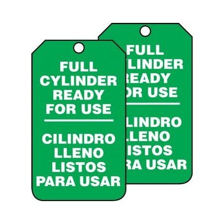 Accuform SBMGT203PTM RP-Plastic Cylinder Status Tag, Legend "Full Cylinder Ready for USE", 5.75" Length x 3.25" Width x 0.015" Thickness, White on Green (Pack of 5)