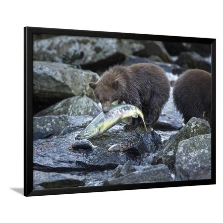 <ul> <li>Title: Brown Bear Cub and Huge Salmon, Katmai National Park, Alaska</li> <li>Artist: Paul Souders</li> <li>Paper Type: Photographic Print</li> <li>Product Type: Framed Art Print</li> <li>Framed in SOHO Black</li> <li>Arrives ready-to-hang for fast, simple installation</li> <li>Framed Size: 42x32 in.</li> <li>Handcrafted in the USA</li> </ul>