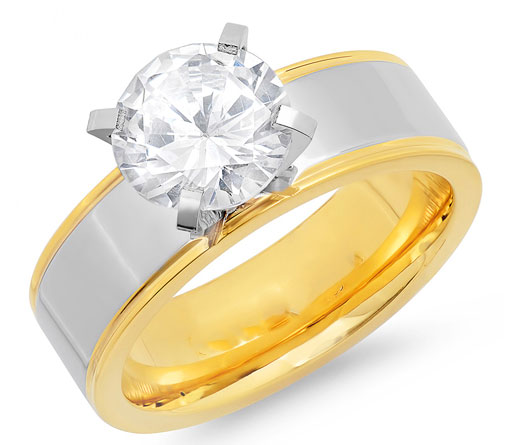 Designer Jewelry 618.218.R Stainless Steel Solitaire Ring with Simulated Diamond