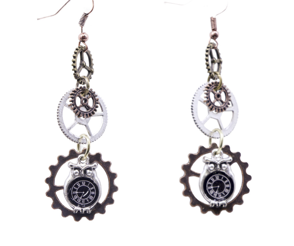 Western Fashion 69602-MLT Steampunk Earring with Gears & Owls, Multi Color