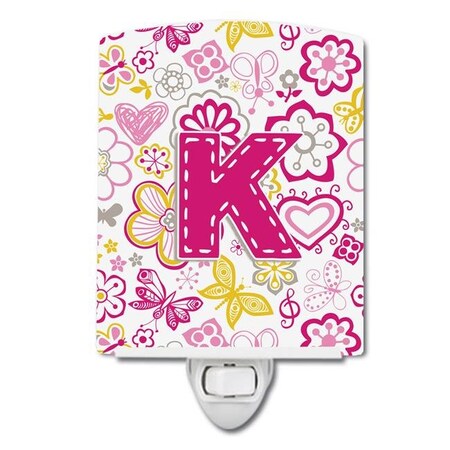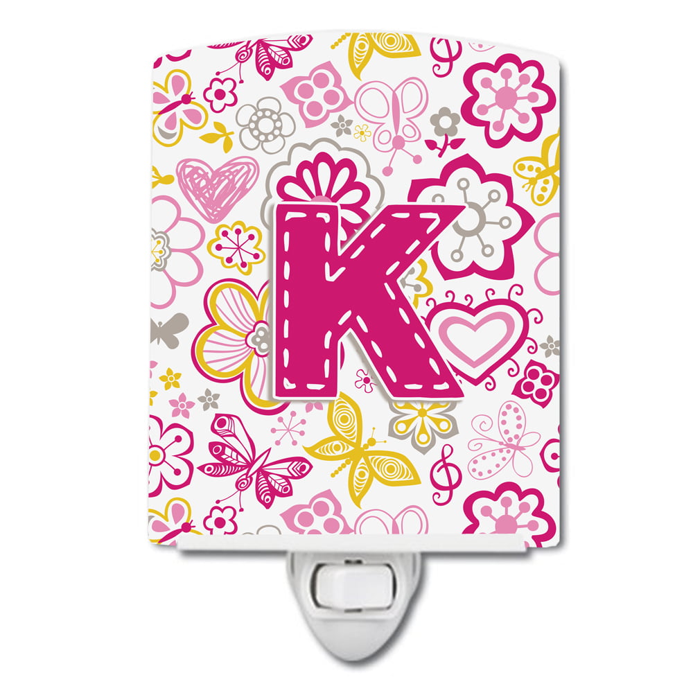 Caroline's Treasures CJ2005-KCNL Letter K Flowers and Butterflies Pink Ceramic Night Light, 6x4x3, Multicolor