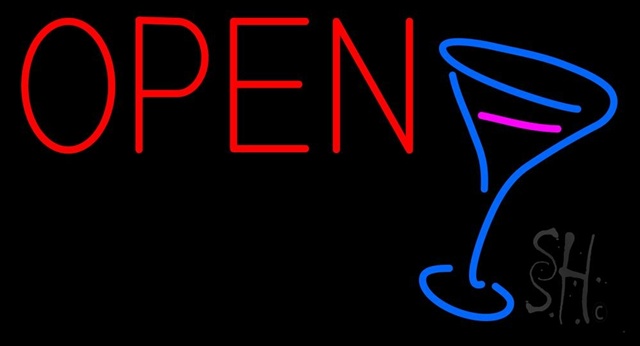 Sign Store N105-0446 Open With Cocktail Glass Neon Sign, 37 x 20 x 3 In.