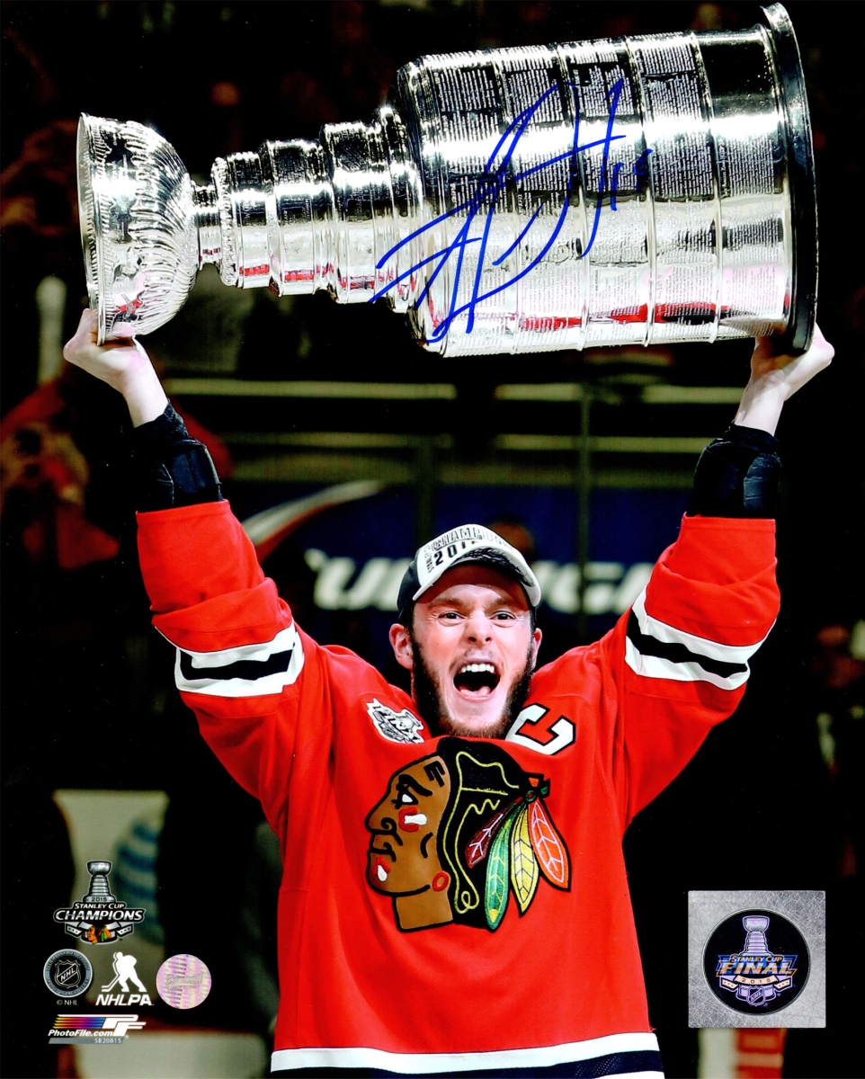 Schwartz Sports Memorabilia TOE08P402 8 x 10 in. Jonathan Toews Signed Chicago Blackhawks 2015 Stanley Cup Holding Troph