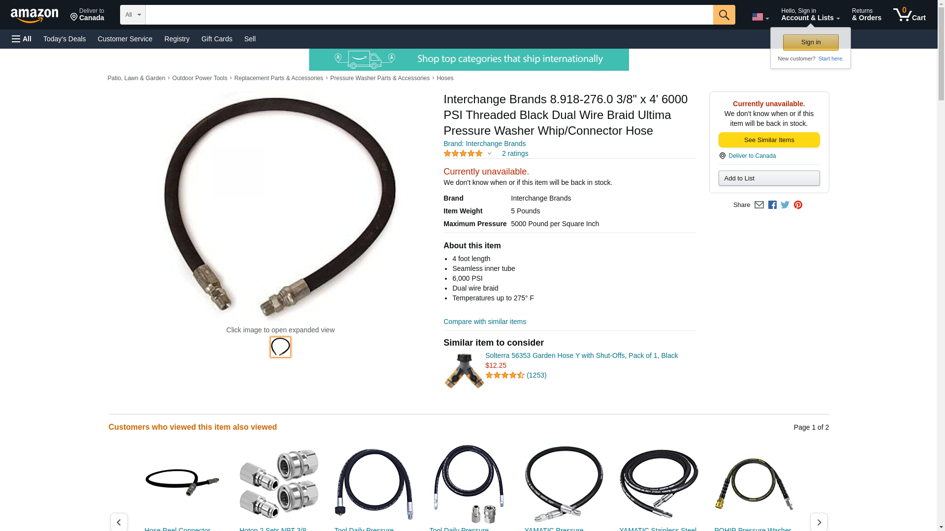 <p>The Interchange Brands 3/8" x 4' 6000 PSI Ultima Pressure Washer Connector Hose (8.918-276.0) features a durable, dual wire braid design with a seamless inner tube for high pressure applications. It is rated for up to 5,000 PSI and can be used to connect a high pressure hose reel to a pressure washer.</p> <ul> <li>4 foot length</li> <li>Seamless inner tube</li> <li>6,000 PSI</li> <li>Dual wire braid</li> <li>One solid, one swiveled end</li> <li>3/8" MPT</li> <li>Temperatures up to 275° F</li> </ul> <ul> <li>One (1) 3/8" x 4' Ultima Pressure Washer Connector Hose</li> </ul>