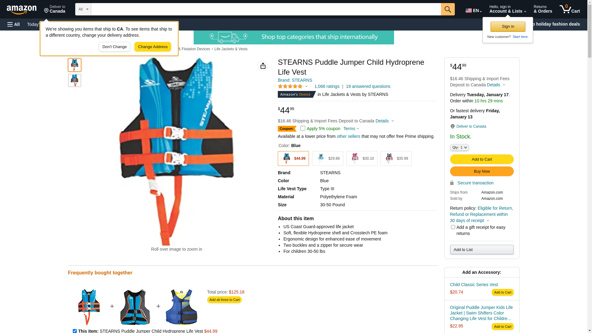 Stearns Child Hydroprene Vest , Blue, 30-50 Pound