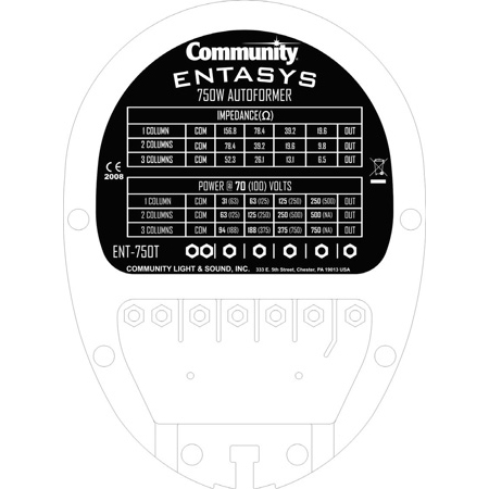 The ENTASYS 750-watt autoformer is a step down auto-transformer for use in constant voltage distribution systems. Designated the ENT-750T, it can be used to minimize the I2R losses of long cable runs by converting the distributed high voltage, low current signal to a lower voltage, higher current signal that can effectively drive the ENTASYS column loudspeakers. The ENT-750T is available in either black or white to match the color of the ENTASYS enclosure(s). A matching autoformer mounting bracket is also included.</p><p>The ENTASYS high-performance column line array loudspeaker system is designed for permanent installation in applications such as auditoriums, airports, train stations, conference centers, lecture halls, houses of worship, stadium concourses and museums. ENTASYS features a unique three-way Full-Range Column and a Low Frequency Column in the same size enclosure, offering superior performance, high output and high power handling capability in an architecturally appealing design that is weather-resistant for outdoor installations.Unlike other column products on the market, the ENTASYS system provides consistent horizontal and vertical coverage from 800 Hz to 16 kHz from a single loudspeaker.</p><p>The ENTASYS line of loudspeakers features just two loudspeaker models but they are able to be configured and deployed to achieve very high SPL, exceptional sound quality and outstanding speech intelligibility. This is accomplished through the use of multiple drivers in each pass band of the loudspeaker system. Particular attention was paid to driver spacing, including the development of a patent-pending Compact Ribbon Emulator, a device that allows a line of 1-inch drivers to effectively produce a single ribbon of energy. The spacing of the drivers used in ENTASYS has been optimized for the frequency region that they reproduce to minimize the formation of grating lobes in the vertical plane.</p><p>ENTASYS systems are designed to be modular. Multiple enclosures may be stacked and joined together to form larger column line arrays. The Full-Range and Low Frequency enclosures can be arranged in any order to direct the sound only where it's needed, and to extend the length of the column to provide additional low frequency pattern control. This enables the sound system designer to specify the best performing configuration for a given application.</p><p>Each individual enclosure features a compact 5.5 inch wide by 7.375 inch deep "teardrop" shaped footprint and stands 44.5 inches tall. An extremely low-profile T-Bar mounting bracket is included with each ENTASYS column for straight "flush" mounting. Since the connector panels are situated on the top and bottom of the modules, the assemblies can be installed virtually flush with the wall, with invisible connections between modules. The result is an attractive, cost competitive system with excellent projection and pattern consistency in both horizontal and vertical coverage. ENTASYS systems provide excellent intelligibility, feedback rejection, and wide frequency response.</p><p>The only additional items required to make ENTASYS work are a high pass filter and a power amplifier. An equalizer may also be used, if desired, but is not required to deliver exceptional sound quality. Each<br />ENTASYS loudspeaker has its own internal passive crossover to provide the required filtering. An external high pass filter is recommended to allow ENTASYS to reach its maximum performance potential.</p>
