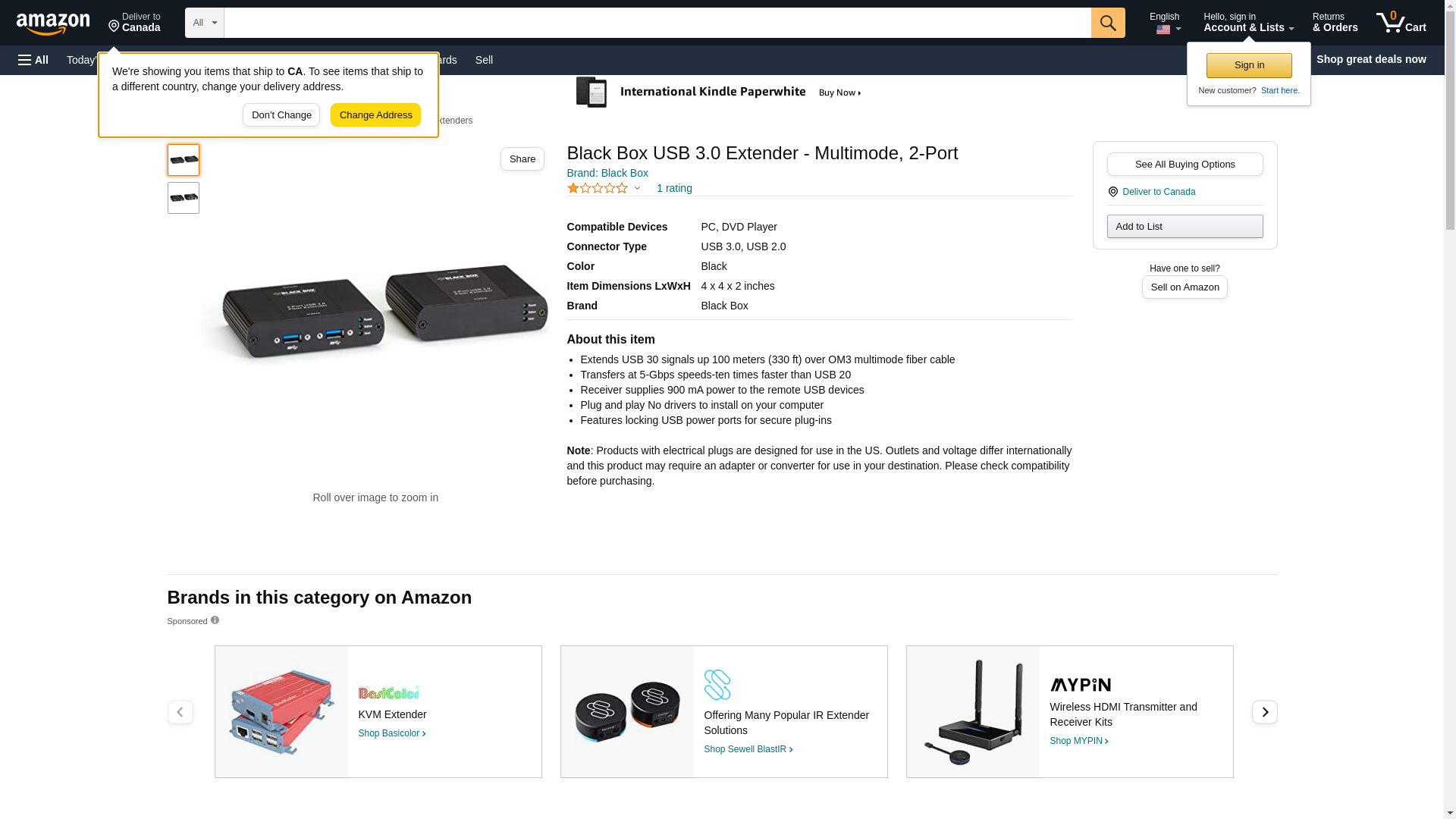 Black Box Network Services USB 3.0 2Port USB Over MUL Fib