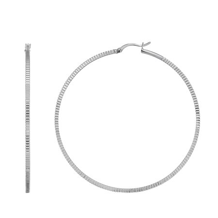 .925 Sterling Silver 2x60mm Textured Fancy Round Hoop Earrings, Hinged Clasp