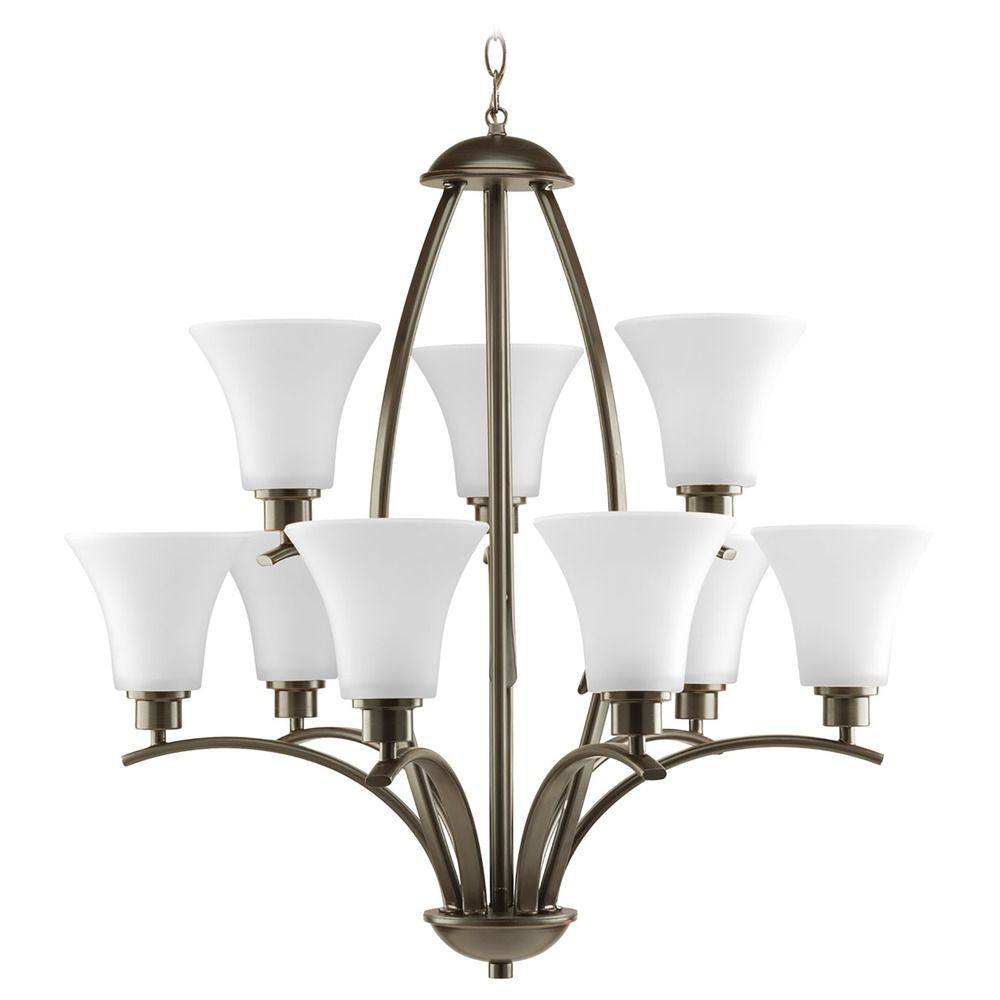 Joy Collection 9-Light Etched White Glass Traditional Chandelier Light Antique Bronze