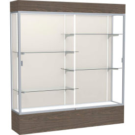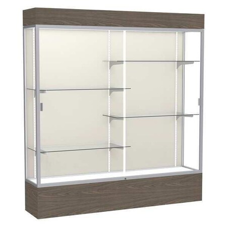 Waddell Reliant Lighted Vinyl Floor Display case, 72"x80"x16", Walnut/Satin Natural