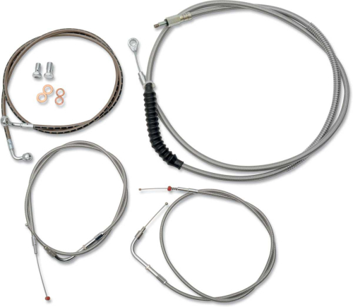 <LI>Takes Cable Calculation Headaches Out of Swapping Handlebars</LI><LI>Kits Give You the Correct Length Cables and Brake Lines You Need So You Can Complete a Handlebar Swap, Install the New Cables/brake Lines and Ride</LI><LI>Kits Include Throttle Cable, Idle Cable (Except 08-11 Dressers), Clutch Cable, Brake Lines, Chrome T Brake Line Junction, Banjo Bolts, Fittings and Copper Crush Washers</LI><LI>Brake Lines Are DOT Approved</LI><LI>Electrical Wire Extensions Not Included (Available Separately)</LI><LI>Made in the U.S.A.</LI><LI>Intended to Be Used With 15" to 17" Ape Hanger Style Handlebars</LI><BR></BR><LI><B>Please Note: The Image Displayed Is Representative of the Item, but May Vary Depending on Your Specific Model.</B></LI>