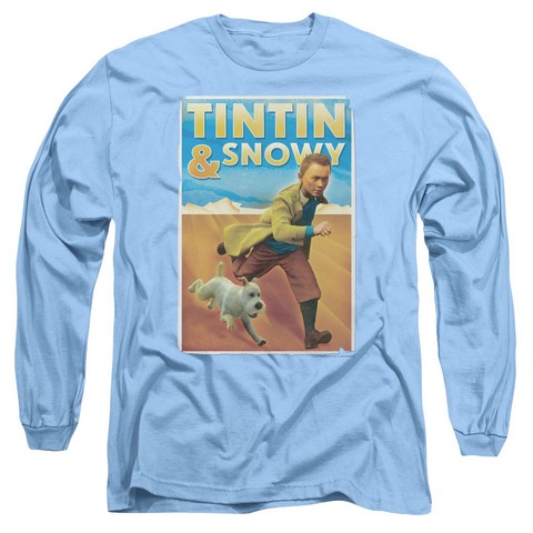 Trevco Tintin-Tintin & Snowy Long Sleeve Adult 18-1 Tee, Carolina Blue - Small