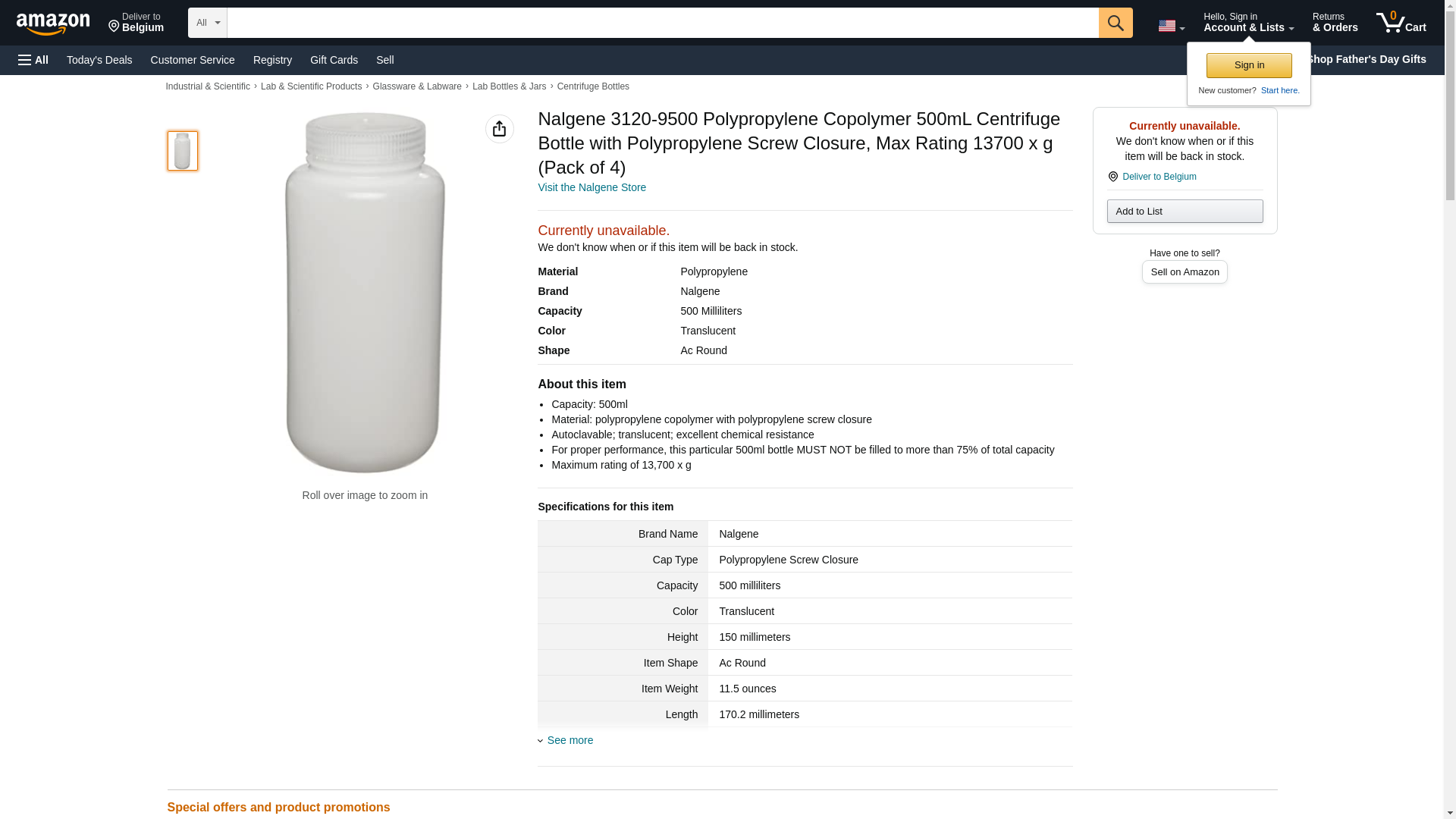 500ml Polypropylene Nalgene (TM) Centrifuge Bottle