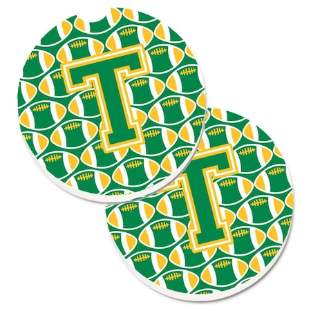 Letter T Football Green and Gold Set of 2 Cup Holder Car Coaster