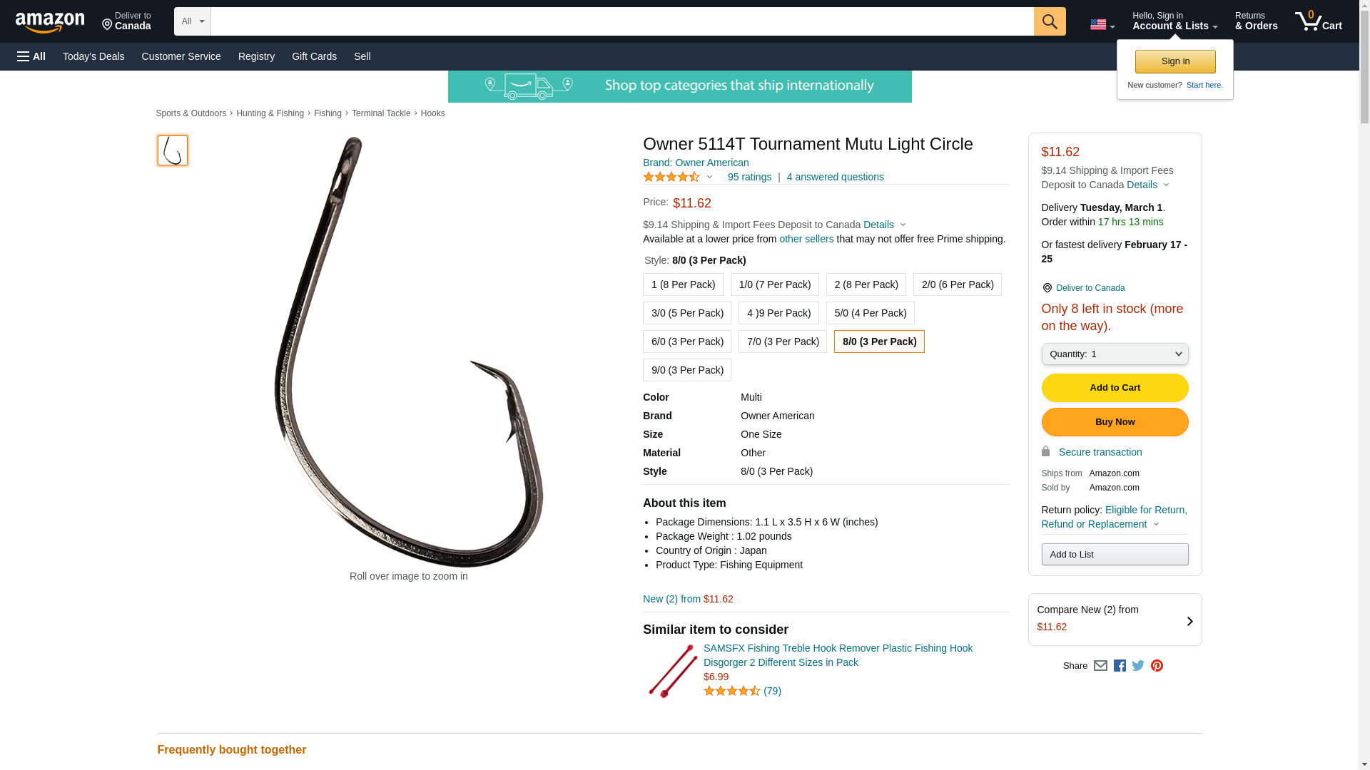 Owner American 5114T-181 Tournament Mutu Light Circle Hook, Size 8/0, Multi, One Size