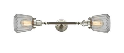 INNOVATIONS LIGHTING 208L-SN-G142-LED FRANKLIN RESTORATION CHATHAM 6 1/4 INCH TWO LIGHT WALL MOUNT CLEAR GLASS VANITY...