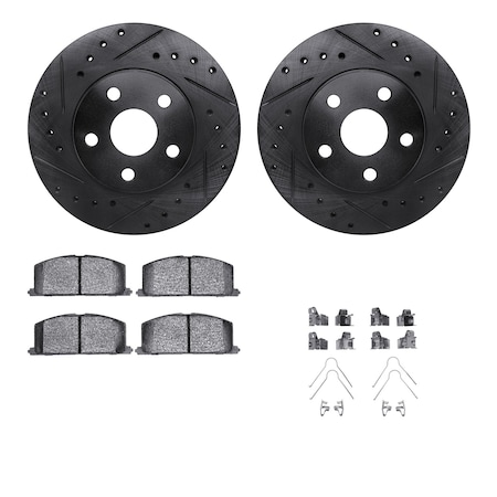 Dynamic Friction Company Front Brake Rotors Drilled and Slotted Black with 5000 Advanced Brake Pads includes Hardware - 8512-76221