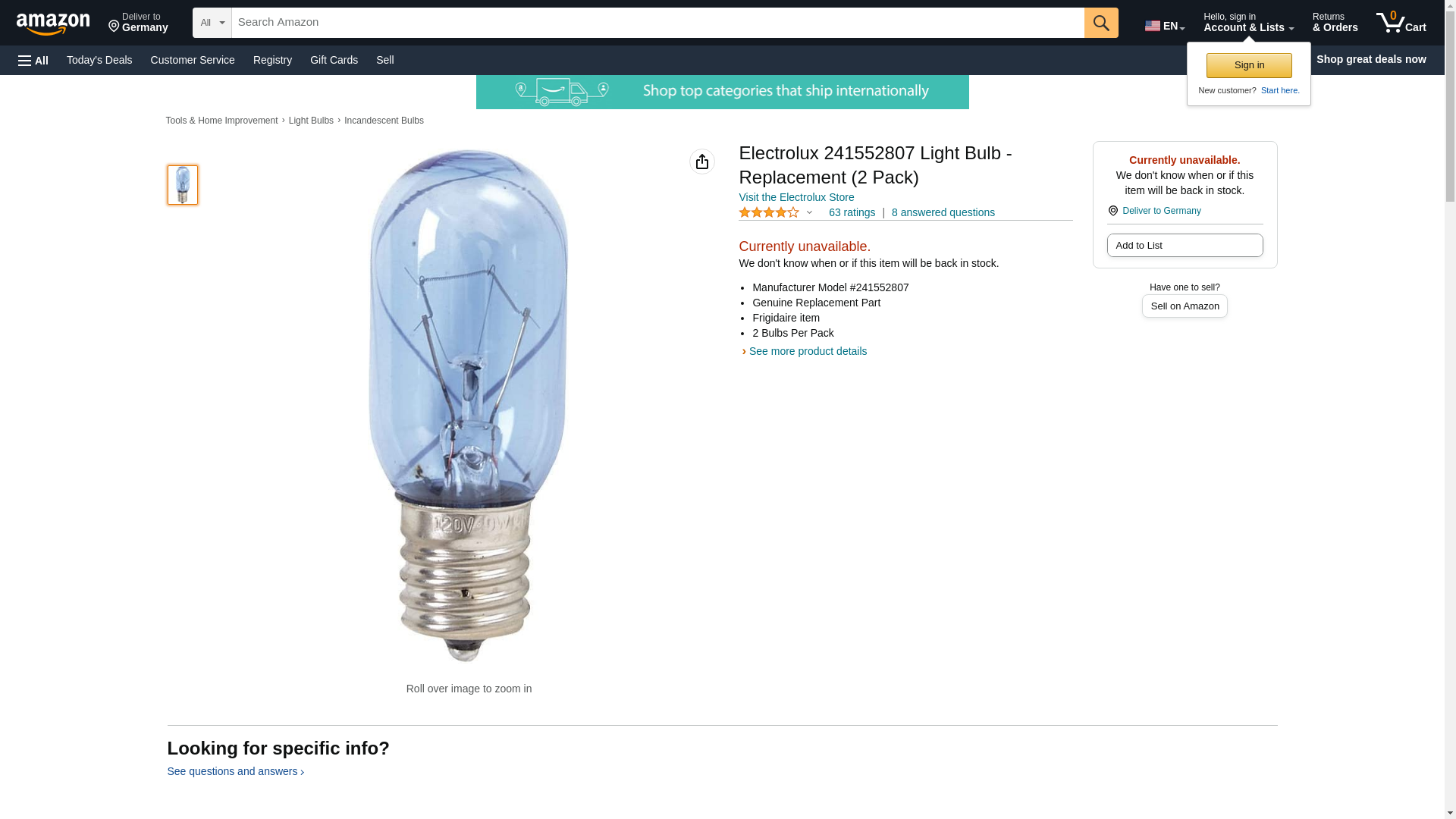 Electrolux 241552807 Light Bulb - Replacement