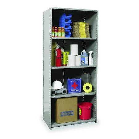 Metal Shelving, Gray, Powder Coated, Frame Material Steel, Load Capacity per Shelf 500 lb, Whole Unit Load Capacity 2,500 lb, Number of Shelves 5, Overall Depth 12 in, Overall Height 84 in, Overall Width 36 in, Post Construction Angle, Bead, Shelf Configuration Starter, Shelf Style Solid, Shelving Material Steel, Assembled Unassembled, Shelving Gauge 22 ga, Post Gauge 14 ga, Shelf Adjustment Increments 1 1/2 in, Number of Drawers 0, Duty Rating Medium-Duty