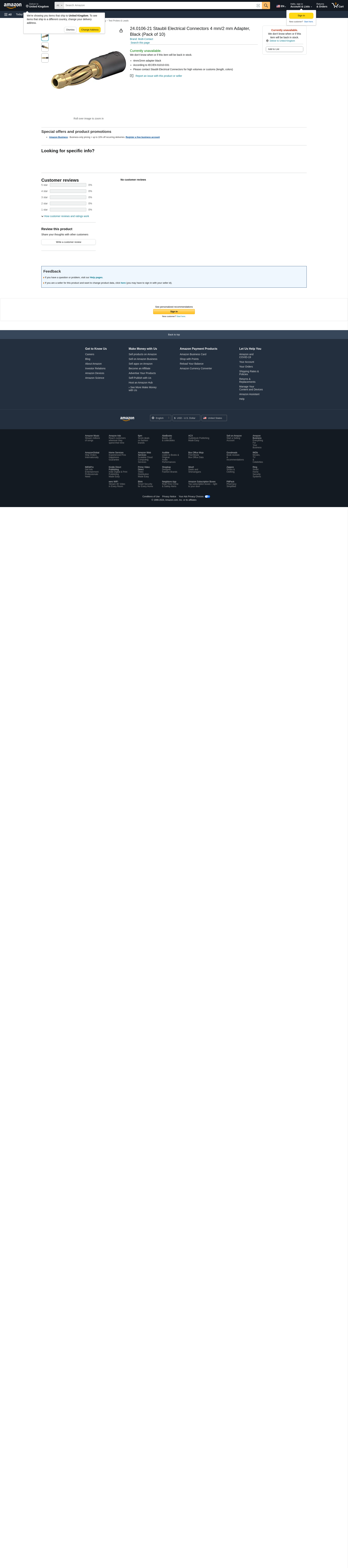 Staubli - 24.0106-21 - Black gold plated adaptor,4mmplug/2mmskt - RS