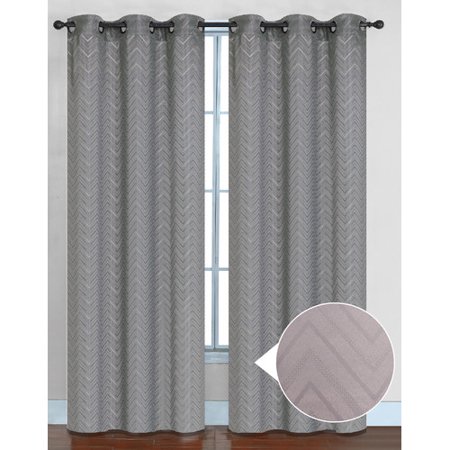 SWET1190 <br /> <b>Features</b> <br /> <ul> <li>Save up to 30% on home heating and cooling costs</li> <li>Block out over 98% of light</li> <li>Reinforced with metal grommets</li> <li>Can also reduce outside noise</li> <li>Machine washable for easy care</li> <li>Foam backing</li> <li>Product Type: Panel pair</li> <li>Pattern: Chevron</li> <li>Material: Synthetic</li> <li>Pieces Included: 2 Panels</li> </ul> <br /> <b>Dimensions</b> <br /> <ul> <li>Panel Width - Side to Side: 38"</li> <li>Panel Length - Top to Bottom: 84"</li> </ul>