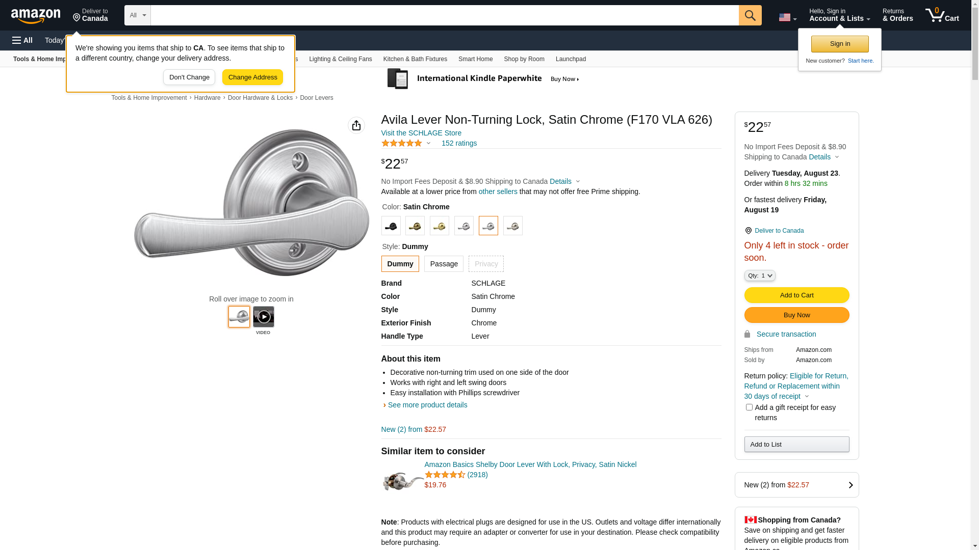 Schlage F170 VLA 626 134 N N Avila Decorative Trim Lever, Satin Chrome
