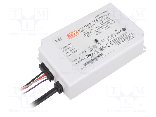 Buy ODLC-65-1400DA MEANWELL AC-DC Constant Current mode (CC) LED driver with PFC, Input range 180-295VAC, Output 46VDC / 1.4A, Dimming with DALI the best pri..
