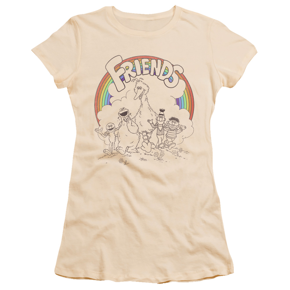 Trevco SST281-JS-3 Sesame Street & Friends-Short Sleeve Junior Sheer T-Shirt, Cream - Large