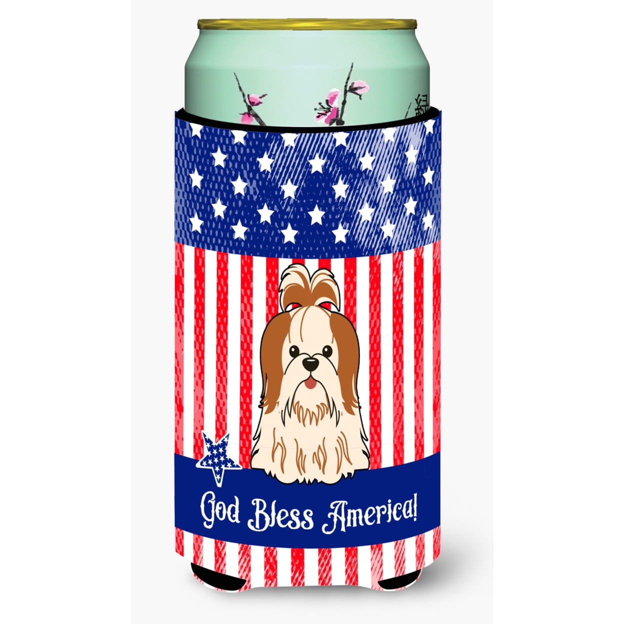 Carolines Treasures BB3082TBC Patriotic USA Shih Tzu Red White Tall Boy Beverage Insulator Hugger