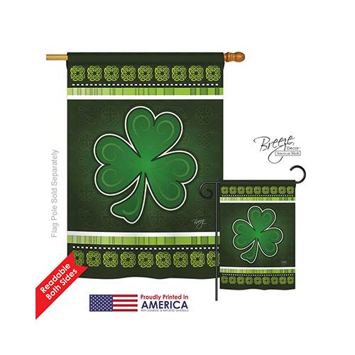 Breeze Decor 02026 St Pats Shamrock 2-Sided Vertical Impression House Flag - 28 x 40 in.