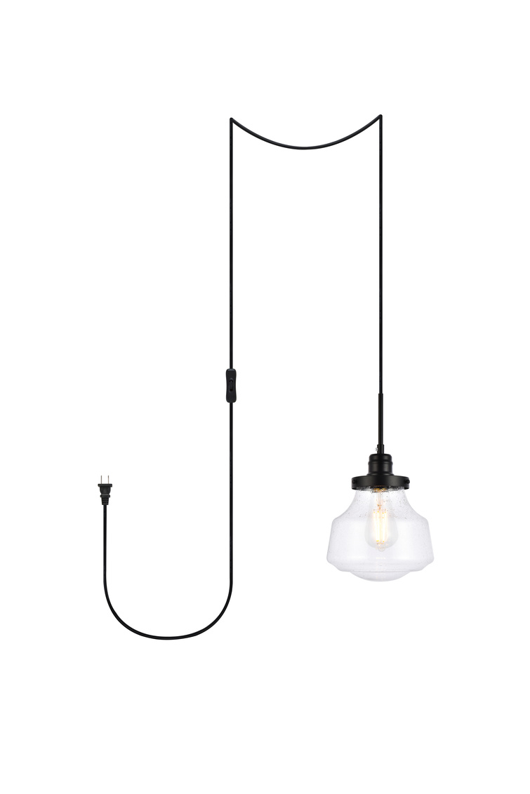 Living District Home Decorative Lyle 1 Light Black and Clear Seeded Glass Plug-in Pendant Lamp