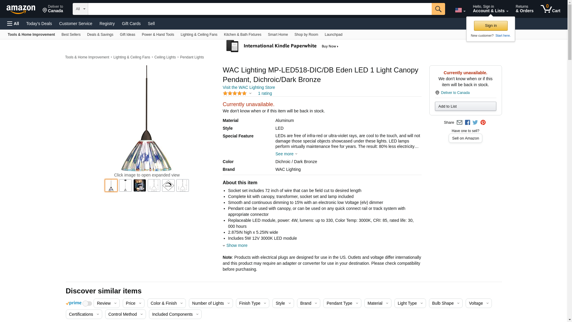 WAC Lighting MP-LED518-DIC/DB Eden LED 1 Light Canopy Pendant, Dichroic/Dark Bronze