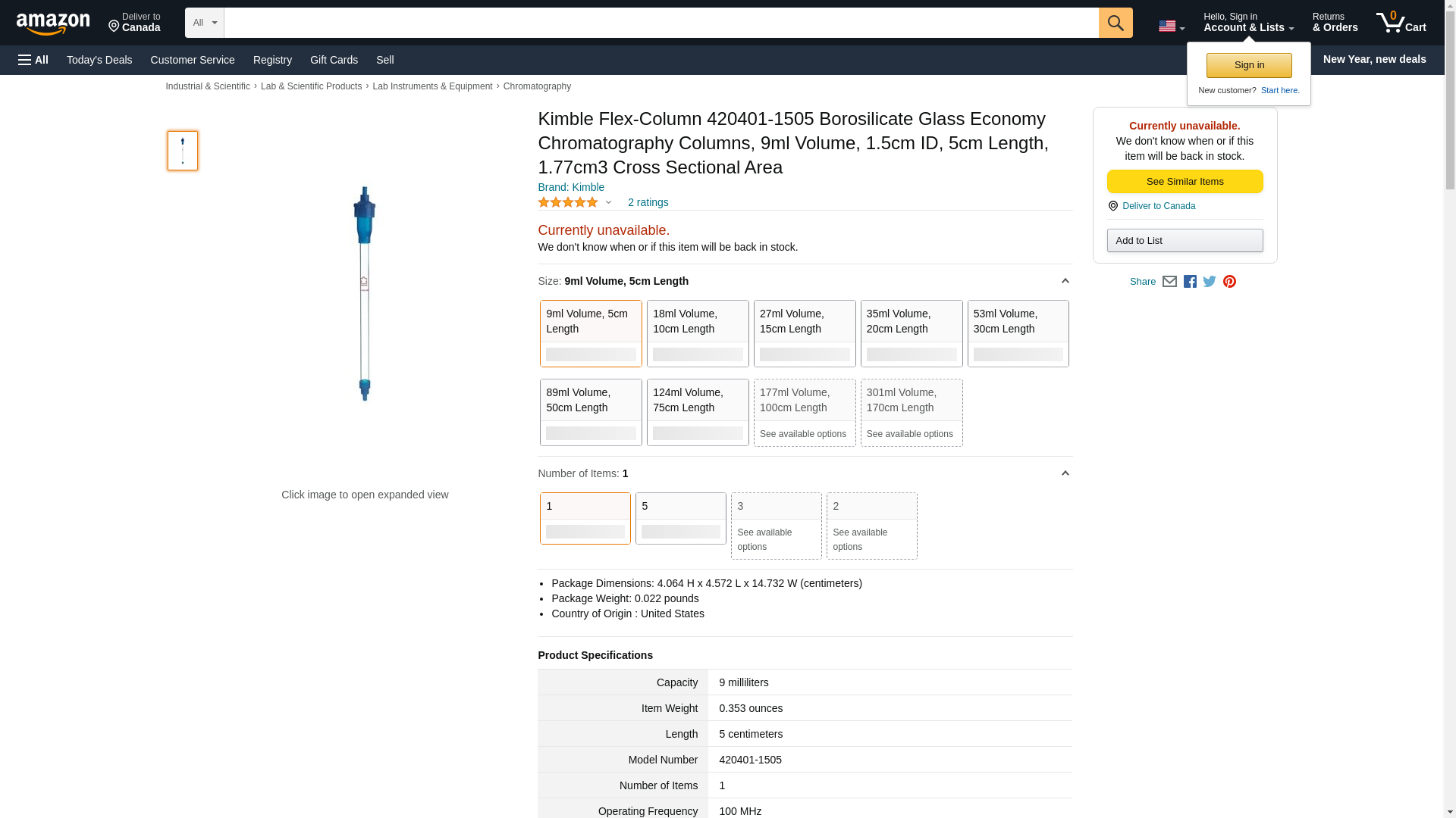 Kimble Flex-Column 420401-1505 Borosilicate Glass Economy Chromatography Columns, 9ml Volume, 1.5cm ID, 5cm Length, 1.77cm3 Cross Sectional Area