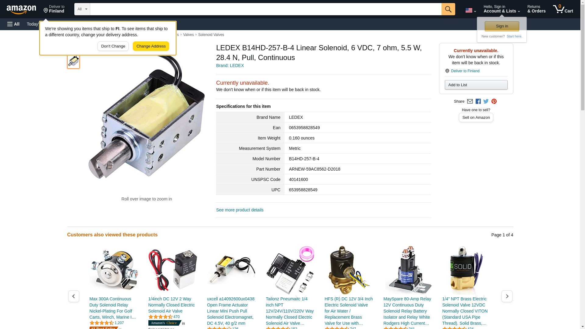 LEDEX B14HD-257-B-4 Linear Solenoid, 6 VDC, 7 ohm, 5.5 W, 28.4 N, Pull, Continuous