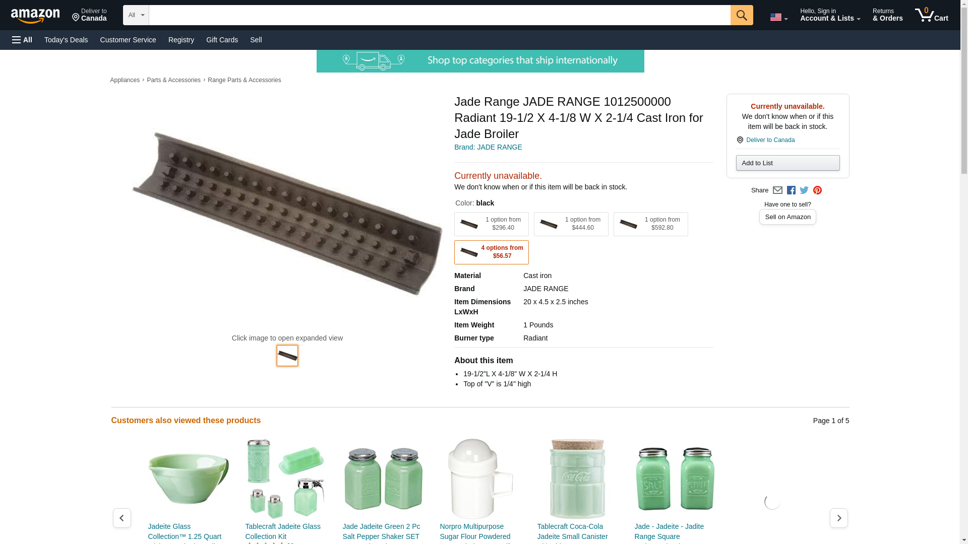 Jade Range JADE RANGE 1012500000 Radiant 19-1/2 X 4-1/8 W X 2-1/4 Cast Iron For Jade Broiler Jb Jcb Jsrb 241078