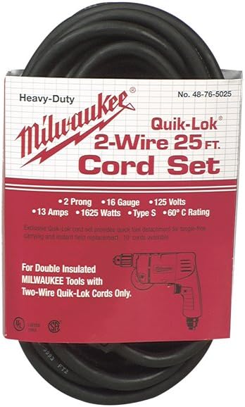 Milwaukee 48-76-5025 Quik-Lok 25-Foot 2 Wire Double Insulated Cord