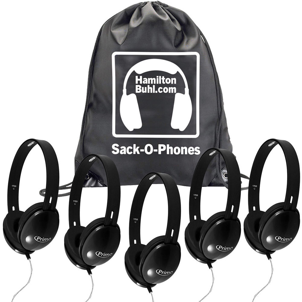 HamiltonBuhl Sack-O-Phones, 5 Black Primo Headphones
