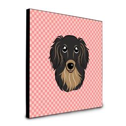 Carolines Treasures BB1213UP88 8 x 8 x 0.625 in. Checkerboard Pink Longhair Black & Tan Dachshund Artwork Panel Wall Dec