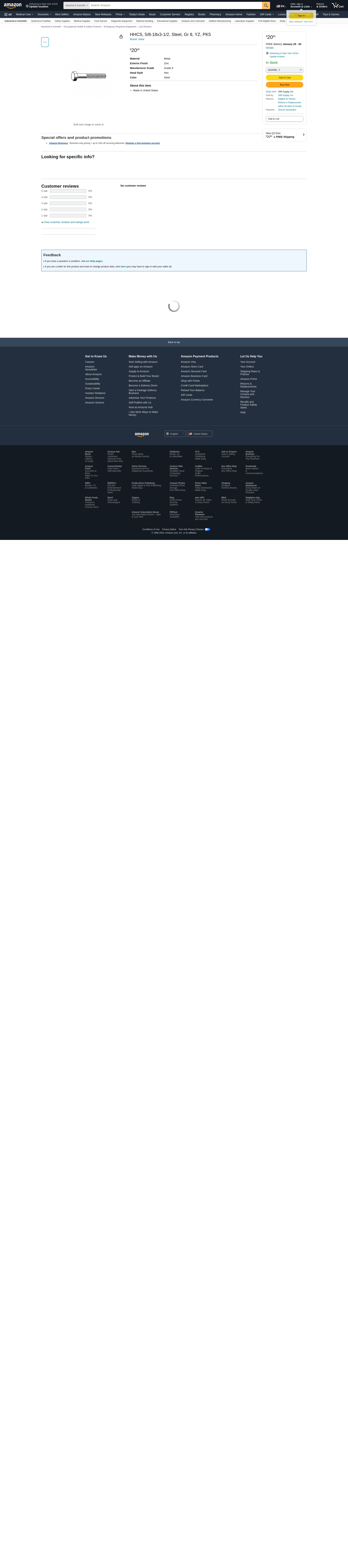 | Feature | <b>Price For:</b> Each <b>Rockwell Hardness</b>: C33 to C39 <b>System of Measurement</b>: Inch <b>Tensile Strength</b>: 150, 000 psi <b>Temp. Range</b>: -58 Degrees to 302 Degrees F <b>Head Width</b>: 15/16" <b>Proof Load</b>: 120, 000 psi <b>Thread Style</b>: Partially Threaded <b>Head Height</b>: 25/64" <b>Thread Type</b>: UNF (Fine) <b>Item</b>: Hex Head Cap Screw <b>Screw Industry Standards</b>: ASME B18.2.1 <b>Dia./Thread Size</b>: 5/8"-18 <b>Head Type</b>: Hex |