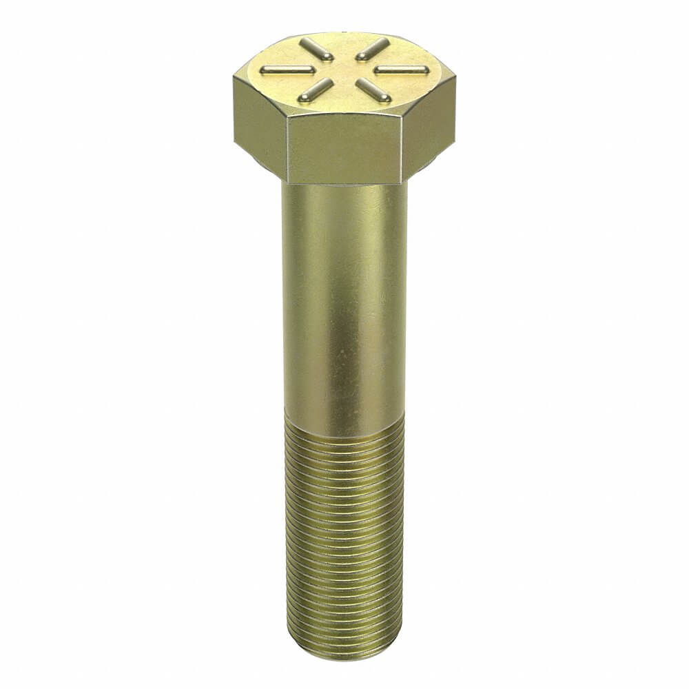 'Hex Head Cap Screw, System of Measurement Inch, Head Type Hex, Dia./Thread Size 5/8 In.-18, Thread Type UNF (Fine), Fastener Length 3-1/2 In., Min. Thread Length 1-1/2 In., Basic Material Steel, Screw Grade/Class Grade 8, Fastener Finish Zinc Yellow, Thread Style Partially Threaded, Thread Direction Right Hand, Head Height 25/64 In., Head Width 15/16 In., Temp. Range -58 Degrees to 302 Degrees F, Proof Load 120,000 psi, Screw Industry Standards ASME B18.2.1, Package Quantity 5'