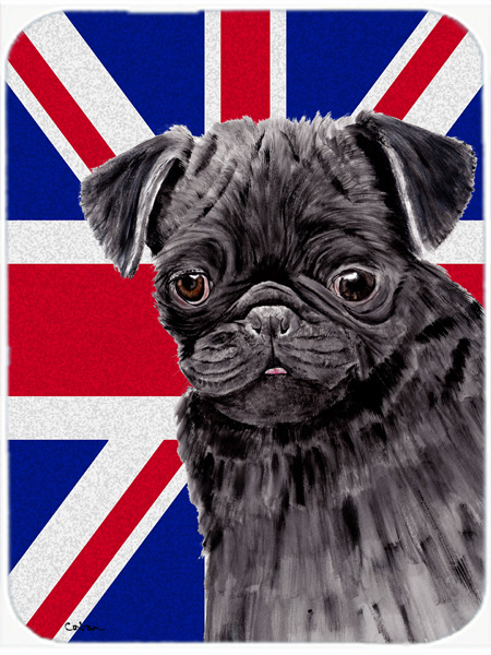 Caroline's Treasures SC9823LCB Pug with English Union Jack British Flag Glass Cutting Board Large Decorative Tempered Glass Kitchen Cutting and Serving Board Large Size Chopping Board