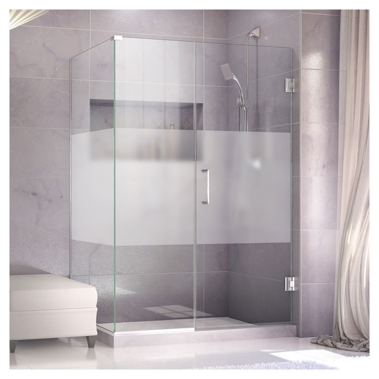 DreamLine SHEN 24325340 HFR 01 Unidoor Plus 32-1/2 in. W x 34-3/8 in. D x 72 in. H Hinged Shower Enclosure, Half Frosted Glass Door, Chrome Finish Hardware