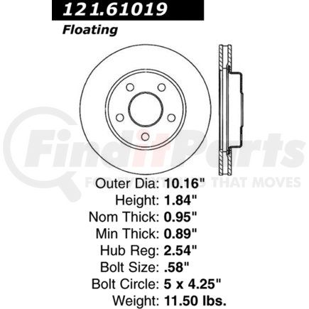 Replacing the Disc Brake Rotor on your vehicle? The Centric 121.61019 is a direct replacement, with the fit of an Original Equipment part.