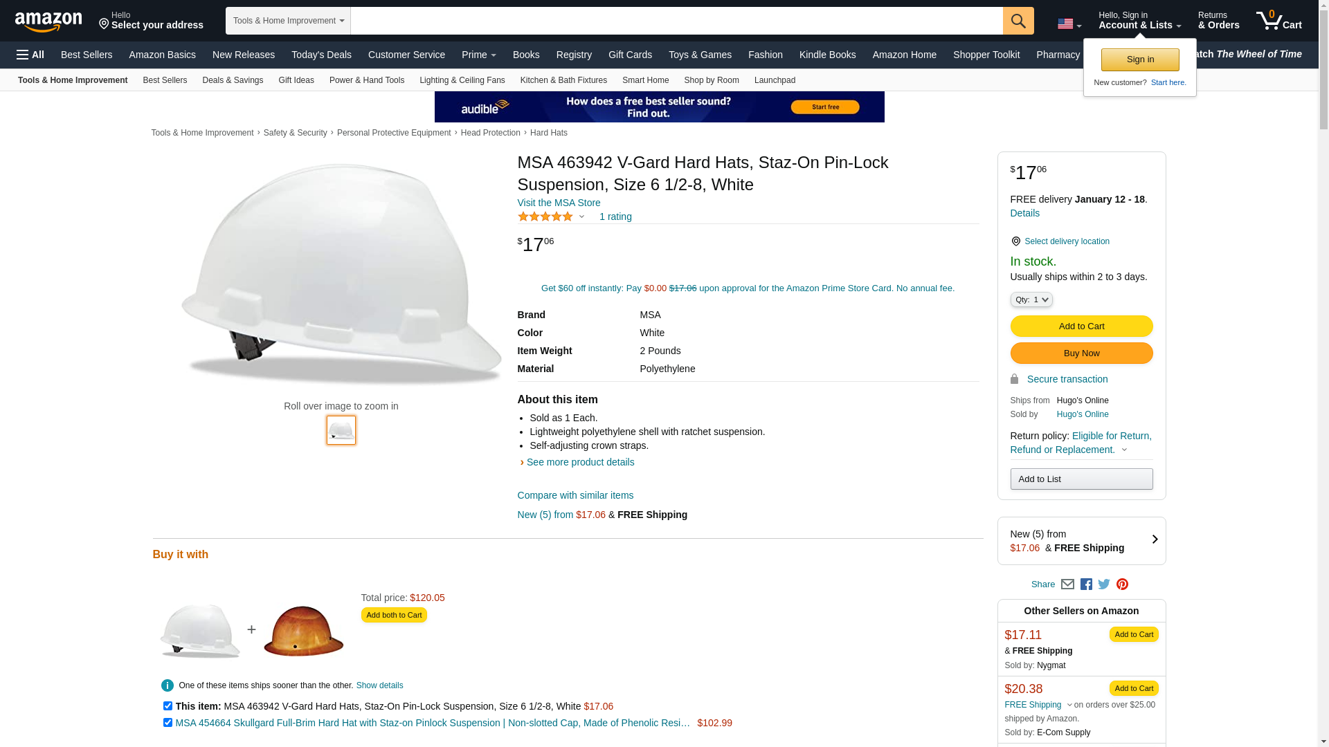 - <b>Head Protection Suspension Type</b>: Pinlock (4-Point) <b>Hard Hat Style</b>: Cap <b>Application</b>: General Purpose <b>High Visibility</b>: No <b>Head Protection Brand</b>: MSA <b>Accessory Mounting Options</b>: Side-Slots <b>Country of Origin (subject to change)</b>: United States