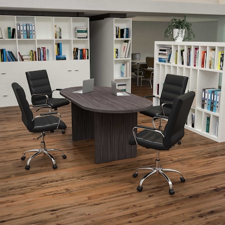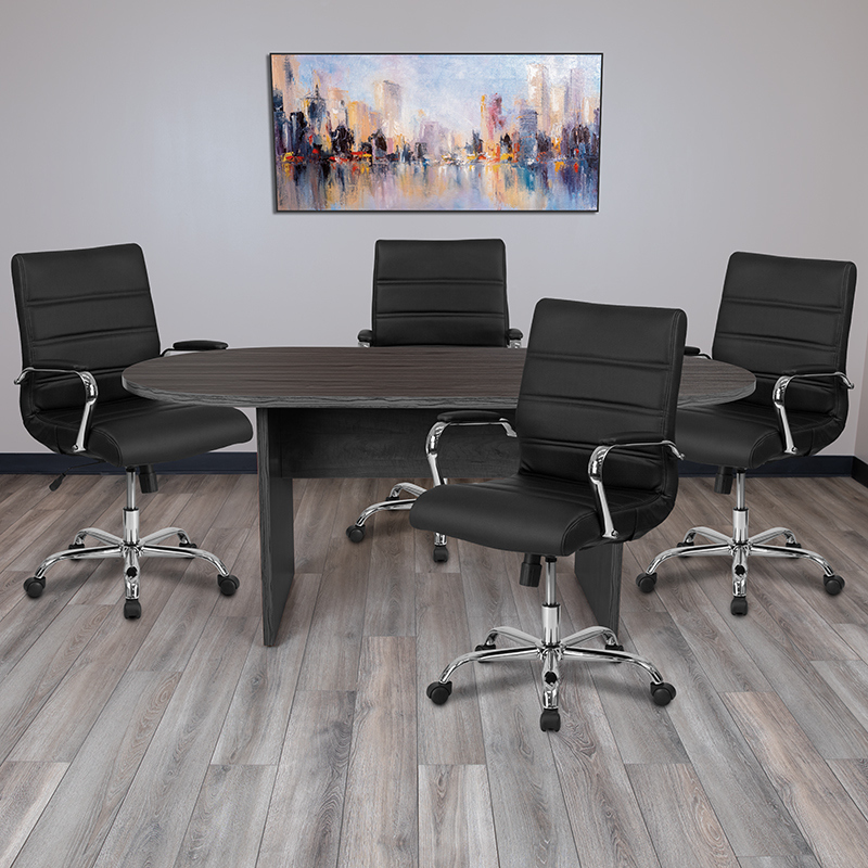 Flash Furniture 5 Piece Rustic Gray Oval Conference Table Set with 4 Black and Chrome LeatherSoft Executive Chairs