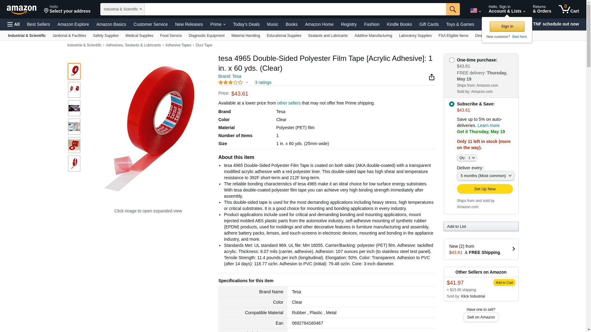 Tesa 4965 is a transparent double-sided self-adhesive tape consisting of a PET backing and a modified acrylic adhesive.Main ApplicationsMounting ABS plastic parts in the car industrySelf-adhesive mounting of rubber/EPDM profilesMounting decorative profiles and mouldings in the furniture industryMounting battery packs,