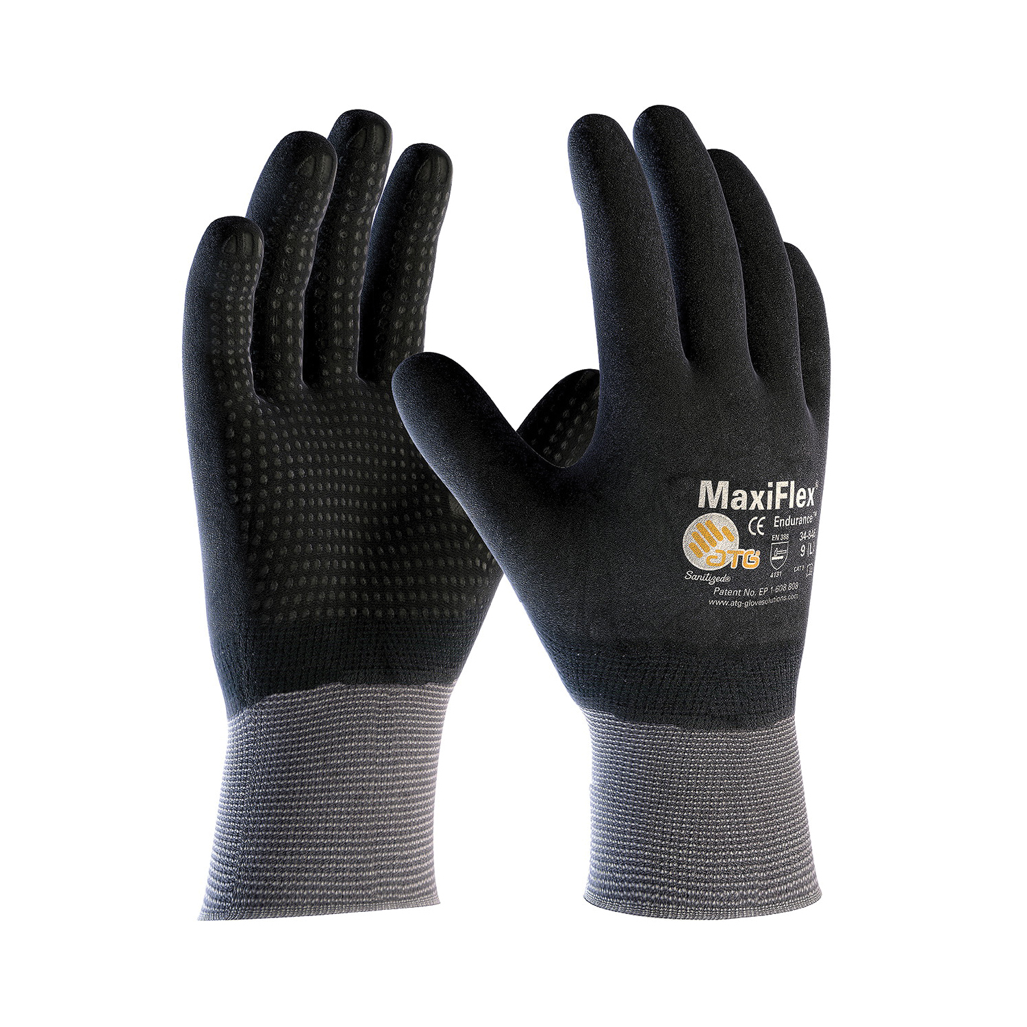 ATG? 34-846/XL MaxiFlex? Endurance? 34-846 Coated Gloves, XL, Nitrile Palm, Black/Gray/Yellow, Seamless, Nylon | Steiner Electric Company