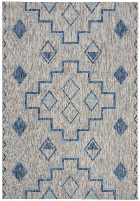 Safavieh CY8533-36812-6 6 ft. 7 in. x 9 ft. 6 in. Courtyard Rectangle Power Loomed Area Rug, Grey & Aqua