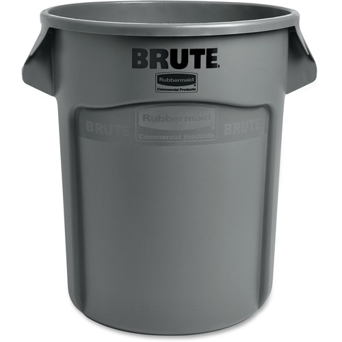 Stackable brute container without lid features innovative solutions for making refuse collection and storage more efficient. Innovative venting channels make lifting out liners up to 50 percent easier, improving productivity and reducing the risk of injury. Integrated cinches secure the liner, allowing efficient knot-free liner changes. Proprietary design constructed with the highest quality material plus a uv inhibitor ensure long life in even the mostmercial environments. It will not fade, warp, crack or crush. Seamless construction makes cleaning the round container easier. Reinforced base is specifically engineered to be dragged over rough surfaces, extending life and overall durability, even in the toughest environments. Rounded handles make lifting and moving easier. Contoured base handles improve grip and ergonomics, reducing strain and improving efficiency when emptying containers. Rim features integrated rib structure to increase strength and resist crushing.