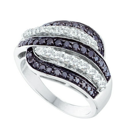 <p><span style="font-size:16px;"><b><u>Description</u></b><br /></span></p> <p><span style="font-size: 14px;">14kt White Gold Womens Round Black Colored Diamond Five Row Striped Band Ring 7/8 Cttw</span></p> <br /> <p><span style="font-size:16px"><u><b>Gemstone Details</b></u></span></p> <p><span style="font-size:14px">1.00 Carats total weight<br /><br />All diamonds are natural and conflict-free in origin<br /><br /></span></p> <ul type="square"> <b>Round Colored Black Diamond</b> <br /> <li>3/4 ct.t.w.</li> <li>I2-I3 clarity</li> <li>Black color</li> <li>Pave setting</li> </ul> <br /> <ul> <b>Round Diamond</b> <br /> <li>1/4 ct.t.w.</li> <li>I2-I3 clarity</li> <li>I-J color</li> <li>Pave setting</li> </ul> <br /> <p><span style="font-size:16px"><u><b>Specifications</b></u><br /></span></p> <p><span style="font-size:14px">14kt White Gold<br />Widest point width: 14 mm (.55 inches )<br />Width of shank: 3 mm<br />5.7 grams (approximately)<br />Ring size selectable</span></p> <p><span style="font-size:11px">All colored diamonds are treated to permanently alter their appearance.</span></p> <p><span style="font-size:11px">Combined diamond weight of 1.00 carats total weight represents a range of 0.95 - 1.05 cts. t.w.</span></p>
